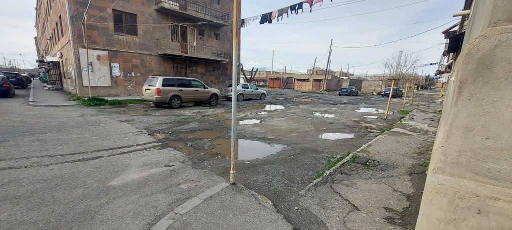 Էս դրածս նկարներից կարող ա տպավորություն ստեղծվի, թե քաղաքում իսկապես սաղ հարցերը լուծված են, մնացել ա շատրվանը, բայց իրականում կողքի փողոցներում ու բակային տարածներում ոնց որ ռումբեր տրաքած լինեն, ու ես կարծում եմ քաղաքացիները դեմ չէին լինի, որ շարունակեին հեռվից նայել սովետից մնացած շատրվանին, բայց իրանց բակերն էս տեսքը չունենային։