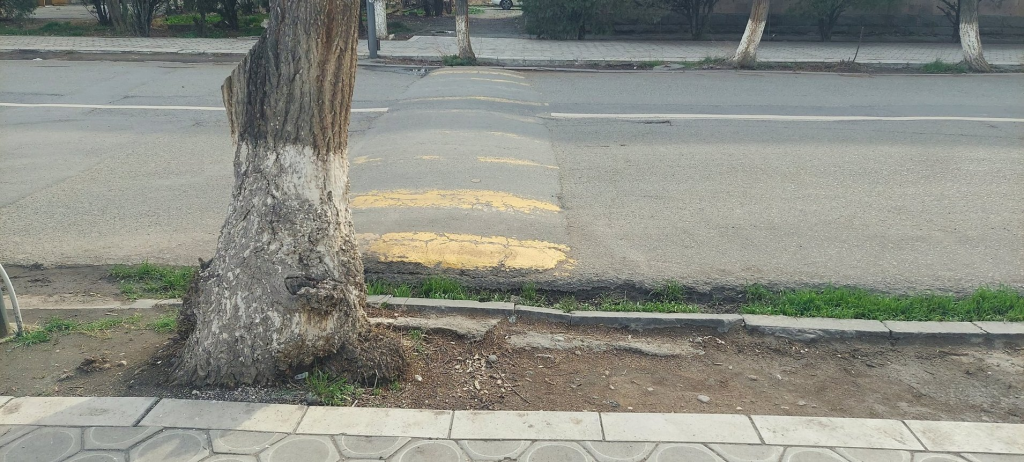 Մեկ մետր լայնությամբ (կյանքում սենց զեբր չէի տեսել), երկու կողմերից դուրս ա գալիս գազոնի վրա, որի մեջտեղում էլ հենց ծառ ա տնկած։ Այսինքն ամեն ինչ արած ա, որ զեբրով անցնելը անհարմար լինի։ Կարելի էր դեմն էլ ինչ որ պատնեշ շարել, բայց դա չեն ֆայմել 😀